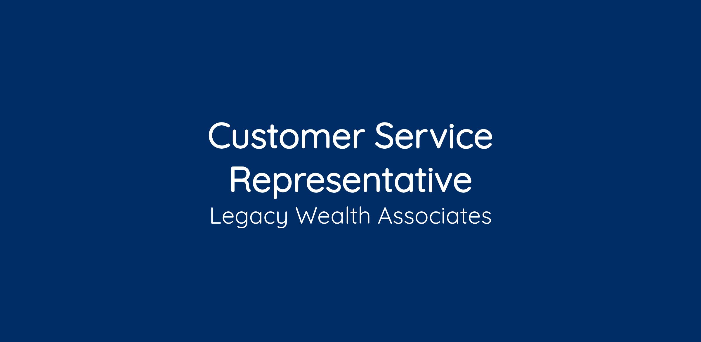 At Legacy Wealth Associates, we recognize that our clients rely on us for guidance that impacts their long-term financial well-being. We are seeking a Customer Service Representative who approaches each interaction with professionalism, patience, and a genuine commitment to helping others.