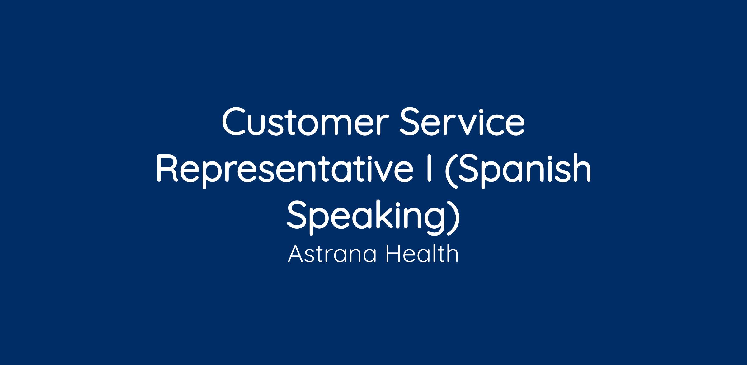 About the Role: Astrana is looking for a Customer Service Representative to join our fast and growing Dynamic team. This position requires speaking fluent in Spanish.