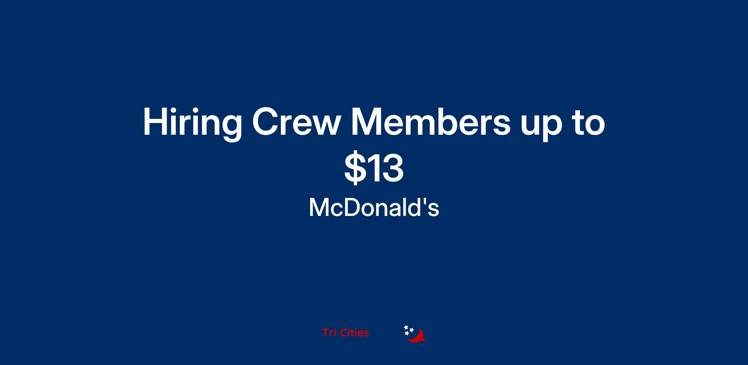 McDonald's and its independent franchisees care about their employees and that's why we provide them with an opportunity to learn, grow, and succeed every day. By offering industry-leading education programs and world-class training, we provide opportunities that inspire confidence and foster valuable skills to help employees thrive wherever they are on their journey, whether they stay at McDonald's or go elsewhere. There is a reason more than 80% of employees are proud to work at McDonald's and would recommend working at one of our restaurants. A Crew Team Member at McDonald's is more than just a paycheck - it's a chance to gain life skills and grow as an individual. And for anyone willing to take advantage of these opportunities...we're committed to becoming America's Best First Job.