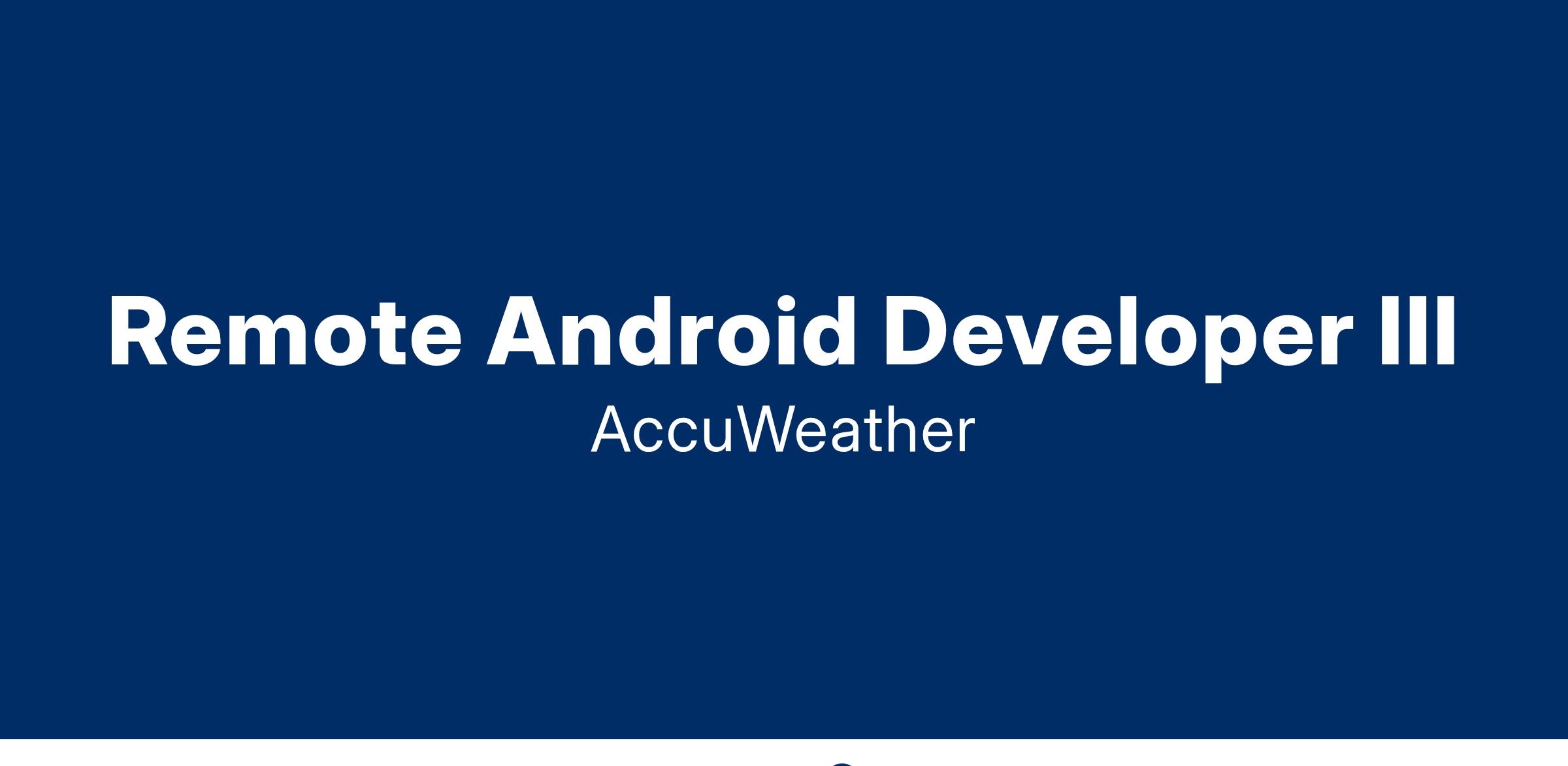 The Android Developer has a passion for building world-class mobile products and strives to deliver the best experience for AccuWeather users. This role is a unique opportunity to be instrumental in developing our global mobile platform.