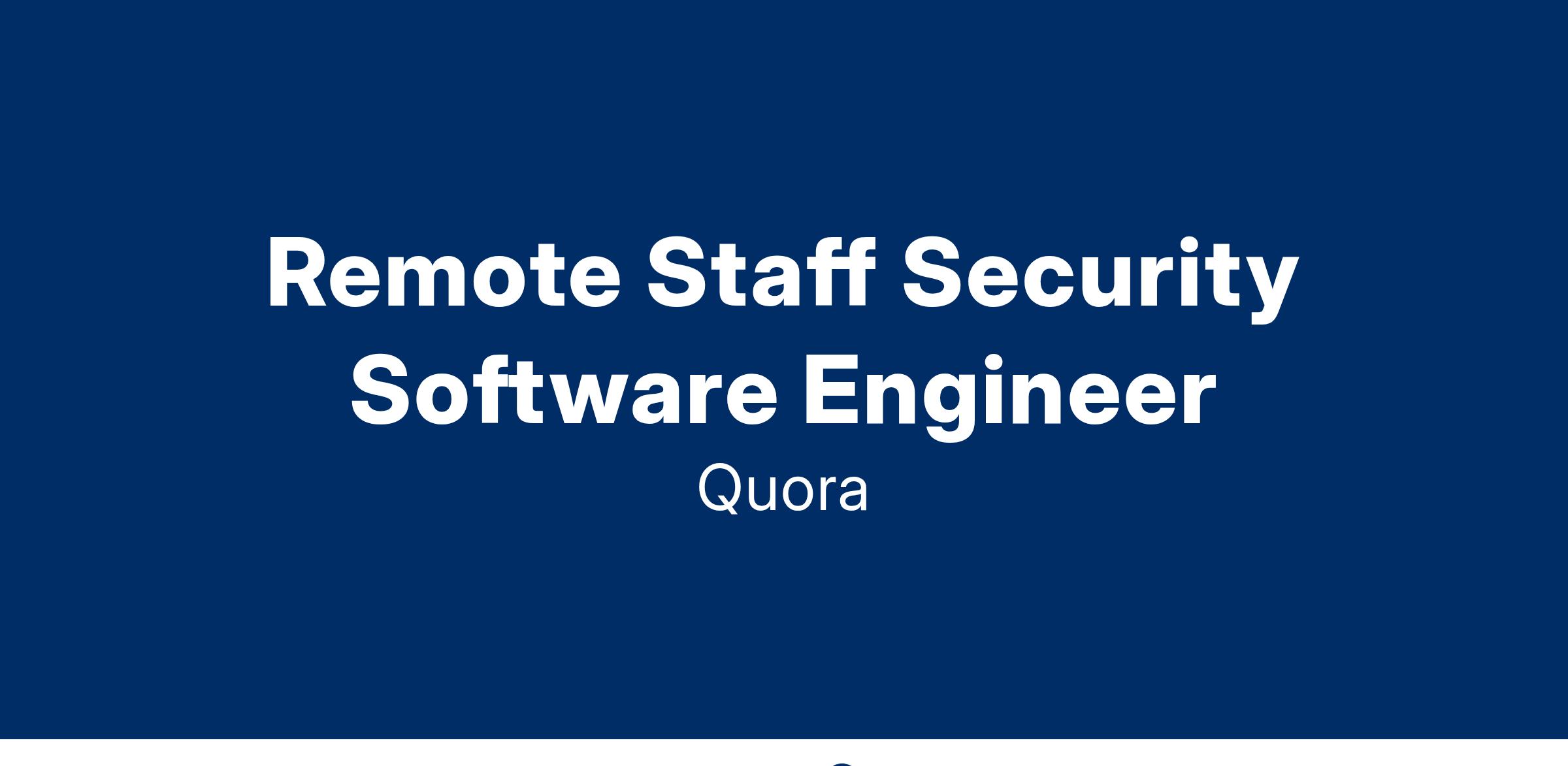 You will be a key member of the newly created Security Engineering Team, with a mission to keep Quora safe from security problems by building robust protections around our products, infrastructure and people. Our small engineering team works on challenging problems every day. We have a culture that’s rooted in constantly learning and improving, and our engineers are encouraged to think big and experiment with new ideas.
